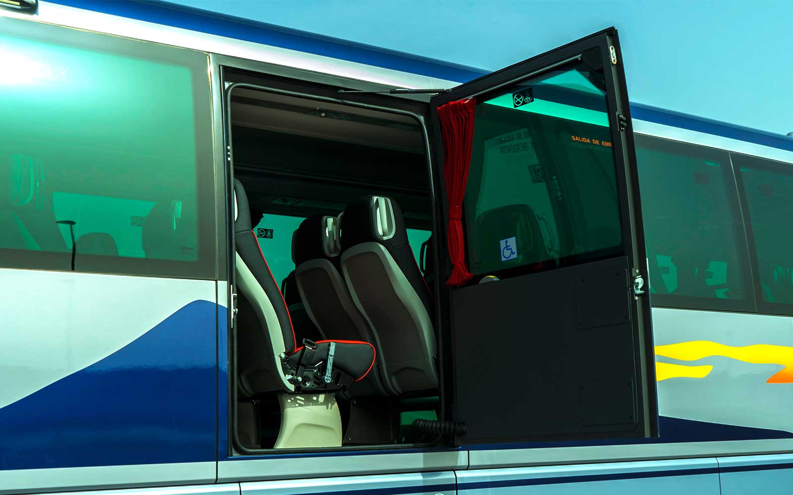 Es fundamental que el acceso al autobús esté habilitado para personas con movilidad reducida. Rampas y plataformas elevadoras con anclajes y barandillas facilitan la entrada y salida del vehículo de manera cómoda.